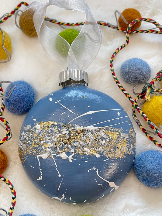 Glass Disc Ornament - Soft Blue with Metallic Leaf