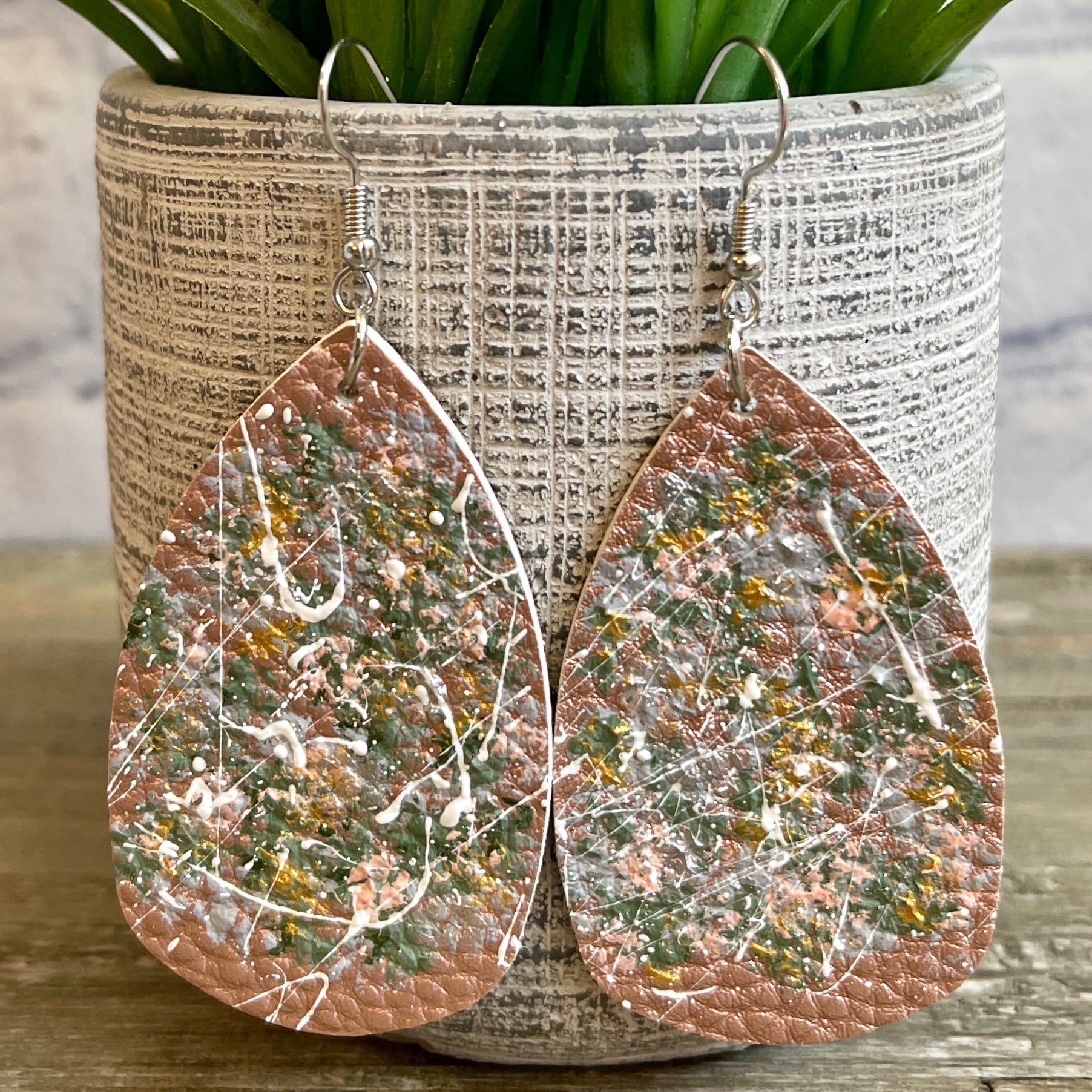 Blush pink teardrop shape with olive green, gray green, gold and white paint.